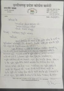 रायपुर। कांग्रेस के राष्ट्रीय अधिवेशन से पहले ही पार्टी में विवाद होने लगा है। बता दें कि PCC संगठन के महामंत्री अमरजीत चावला ने पीसीसी चीफ मोहन मरकाम को पत्र लिखा है। दरअसल AICC की तरफ से अमरजीत चावला को कारण बताओ नोटिस जारी किया गया है। उन्होंने पत्र लिखकर कारण बताओ नोटिस का हवाला देते हुए राष्ट्रीय अधिवेशन की जिम्मेदारियों से मुक्त करने की मांग की है।