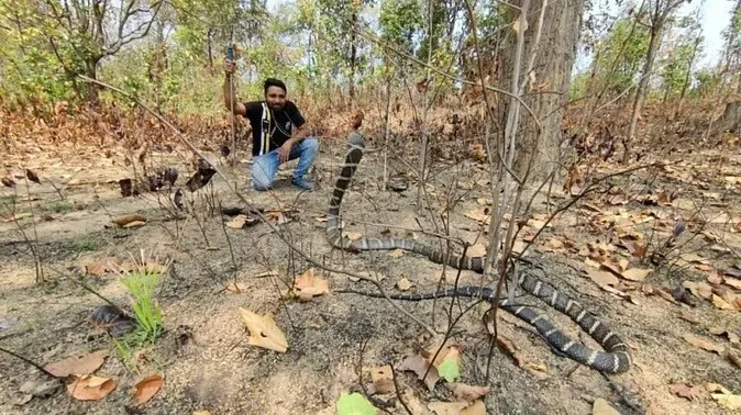 कोरबा से करीब 40 किमी दूर सोलवा पंचायत के छुईढोढा समीप ग्रामीण के बाड़ी में 11 फीट का किंग कोबरा दुनिया का सबसे लम्बा विषधर सर्प मिला। वन विभाग की टीम ने सफल रेस्क्यू कर लोगों से कोबरा को न मारने और बचाने की अपील की।#CG #Kobra #wildlife #Nature pic.twitter.com/JMP38AKXmh