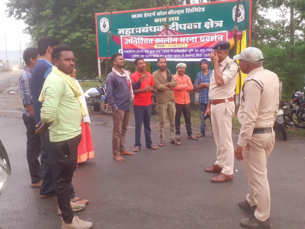 रोजगार व अन्य मांग को लेकर भूविस्थापित दीपका में कर रहे हैं आंदोलन