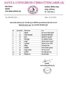 छत्तीसगढ़ ब्रेकिंग : JCCJ ने 11 प्रत्याशियों का किया ऐलान, रेणु ऋचा भी लड़ेगी चुनाव