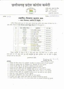 नगरीय निकाय चुनाव 2025 : छत्तीसगढ़ कांग्रेस ने मजबूत रणनीति के लिए प्रभारियों की करी नियुक्ति