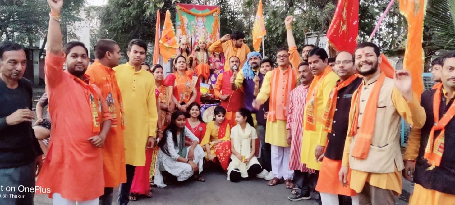 अयोध्या से आए अक्षत कलश को वितरण करने कालोनी में झांकी के साथ निकाली भव्य शोभायात्रा