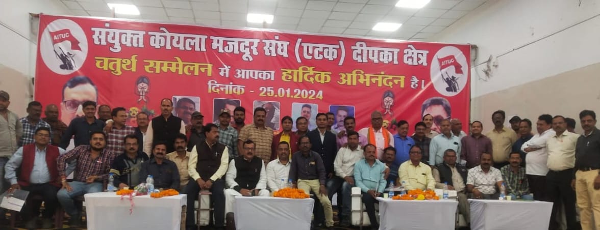 स्नेह मिलन भवन प्रगति नगर दीपका में ट्रेड यूनियन एटक का चतुर्थ सम्मेलन संगठन के केंद्रीय महामंत्री हरिद्वार सिंह के मुख्य अतिथि में संपन्न हुआ।