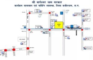व्हीआईपी पासथारी श्रद्धालुगण रायपुर रोड महिन्द्रा शोरूम होते हुए छिरहा तिराहा होते हुए जुनवानी मोड़ होते हुए बस स्टैंड के पास बनी पार्किग नम्बर-02 में अपना वाहन पार्किग कर पैदल कार्यक्रम स्थल तक पहुंचेगें।