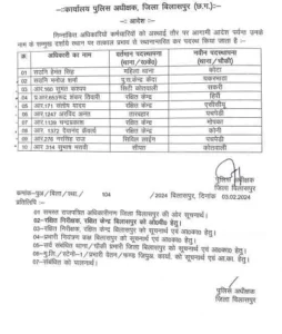 बिलासपुर। पुलिस विभाग में तबादले का आदेश जारी किया गया है, जिसमें 2 एएसआई, 1 प्रधान आरक्षक और 7 आरक्षकों का नाम शामिल है। जिसका आदेश एसपी संतोष सिंह ने जारी किया है।