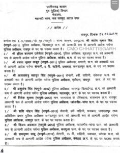 रायपुर। राज्य सरकार ने आधी रात बड़ी संख्या में आईजी व SP के तबादले किए हैं। रायपुर, जशपुर, बलौदाबाजार, रायगढ़, जांजगीर, सरगुजा सहित कई जिलों के एसपी को राज्य सरकार ने बदल दिया है।