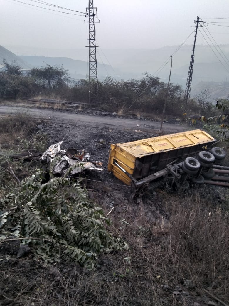 दीपका खदान क्षेत्र में ट्रेलर पलटा दुर्घटना में घायल  चालक सुरेंद्र की घटनास्थल पर हुई मौत