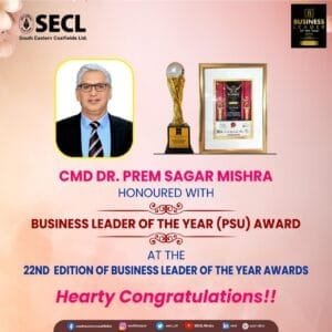 साउथ ईस्टर्न कोलफील्ड लिमिटेड के सीएमडी प्रेम सागर मिश्रा को लगातार दूसरे वर्ष बिजनेस लीडर ऑफ द ईयर अवार्ड सीएमडी डॉ मिश्रा के नेतृत्व में कंपनी ने हाल ही में अपने इतिहास का सबसे तेज़ 150 एमटी कोयला उत्पादन हासिल किया है सतत विकास को बढ़ावा देते हुए इस वर्ष कंपनी ने कोल इंडिया में सर्वाधिक 10 लाख से अधिक पौधे लगाए हैं कर्मचारी हितैषी प्रबंधन के लिए दो दिन पहले ही एचआर विथ एचआर ओरिएन्टेशन अवार्ड से भी हुए हैं सम्मानित एसईसीएल सीएमडी डॉ प्रेम सागर मिश्रा के लीडरशिप एवं कुशल कार्यसंचालन को राष्ट्रीय स्तर सम्मान मिला है। दिनांक 17/02/2024 को मुंबई में आयोजित एक भव्य कार्यक्रम में सीएमडी डॉ मिश्रा को प्रतिष्ठित “बिज़नेस लीडर ऑफ द ईयर (पीएसयू)” अवार्ड से सम्मानित किया गया है। उक्त अवार्ड मुंबई के ताज होटल में आयोजित बिज़नेस लीडर ऑफ द ईयर अवार्ड्स के 22वें संस्करण में एसईसीएल प्रतिनिधि मण्डल ने ग्रहण किया। उल्लेखनीय है कि सीएमडी डॉ प्रेम सागर मिश्रा के नेतृत्व में एसईसीएल निरंतर नयी ऊंचाइयों को छू रहा है। कंपनी द्वारा इस वर्ष लगातार दूसरी बार अपने इतिहास का सबसे तेज़ 150 मिलियन टन उत्पादन हासिल किया है एवं ओबीआर में कंपनी 2 माह पहले ही पिछले वर्ष के कुल ओबीआर को पीछे छोड़ एक नए रिकॉर्ड की ओर अग्रसर है। संवेदनशील प्रबंधन – संवादशील प्रबंधन के मंत्र के साथ सीएमडी डॉ प्रेम सागर मिश्रा के नेतृत्व में भू-स्वामियों की देयताओं में सकारात्मक बदलाव करते हुए फरवरी 2022 से अब तक लगभग 1000 से अधिक भू-स्वामियों को रोजगार स्वीकृत किया है। साथ ही सतत विकास को बढ़ावा देने के लिए सीएमडी डॉ मिश्रा के कुशल मार्गदर्शन में कंपनी ने इस वर्ष 10 लाख से अधिक पौधे लगाए हैं जोकि कोल इंडिया की सभी अनुषंगी कंपनियों में सर्वाधिक है। साथ ही खुली खदानों में सरफेस माइनर एवं भूमिगत खदानों में कंटीन्यूअस माइनर के प्रयोजन से कंपनी द्वारा पर्यावरण-हितैषी कोयला खनन को बढ़ावा दिया जा रहा है। सीएसआर के माध्यम से कंपनी कोयलांचल के सर्वांगीण विकास के लिए प्रतिबद्ध है। कंपनी द्वारा मध्यप्रदेश व छत्तीसगढ़ राज्य के सरकारी स्कूलों में 800 से अधिक स्मार्ट क्लासेस लगाए हैं जिसके जरिए ग्रामीण व आदिवासी बहुल क्षेत्रों के 1 लाख से अधिक बच्चों को उन्नत तकनीक से पढ़ने का अवसर मिल पा रहा है। साथ ही “एसईसीएल के सुश्रुत” योजना से कोयलांचल के बच्चों को निशुल्क आवासीय नीट-मेडिकल कोचिंग दी जा रही है जिससे इन बच्चों के डॉक्टर बनने के सपने को साकार करेगी।