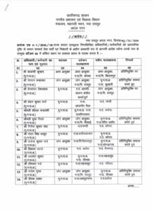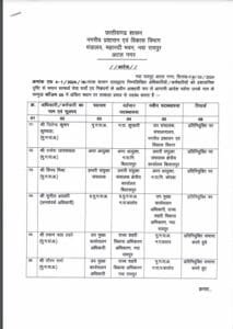 रायपुर। छत्तीसगढ़ सरकार के द्वारा बड़े पैमाने पर अधिकारी कर्मचारियों का तबादला किया गया हैं। आम चुनाव से पहले तबादले के दौर जारी हैं।