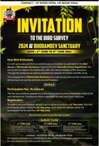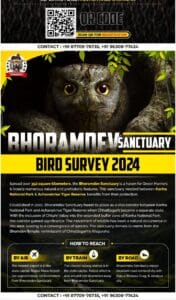 इस वर्ष भोरमदेव अभ्यारण्य अंतर्गत बर्ड सर्वे का आयोजन 4 जून से 6 जून 2024 के मध्य किया जा रहा है। यह आयोजन विश्व पर्यावरण दिवस के अवसर पर किया जा रहा है। इस सर्वे में कोई भी व्यक्ति जो बर्ड वाचिंग का शौक रखते हो एवं पक्षियों के संबंध में उन्हें पहचान के संबंध में विशेष ज्ञान रखते हो वह भाग ले सकते हैं।