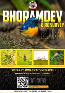 भोरमदेव बर्ड सर्व 2024 का शुभारंभ 4 जून 2024 को नीलाम हाल कवर्धा में किया जाएगा। 5 जून को प्रातः एवं शाम को फील्ड सर्वे का कार्य संपन्न किया जाएगा एवं 6 जून को प्रतिभागियों द्वारा एकत्र की गई जानकारी फोटोग्राफ्स आदि वन विभाग को प्रदाय किये जाने उपरांत समापन किया जाएगा।