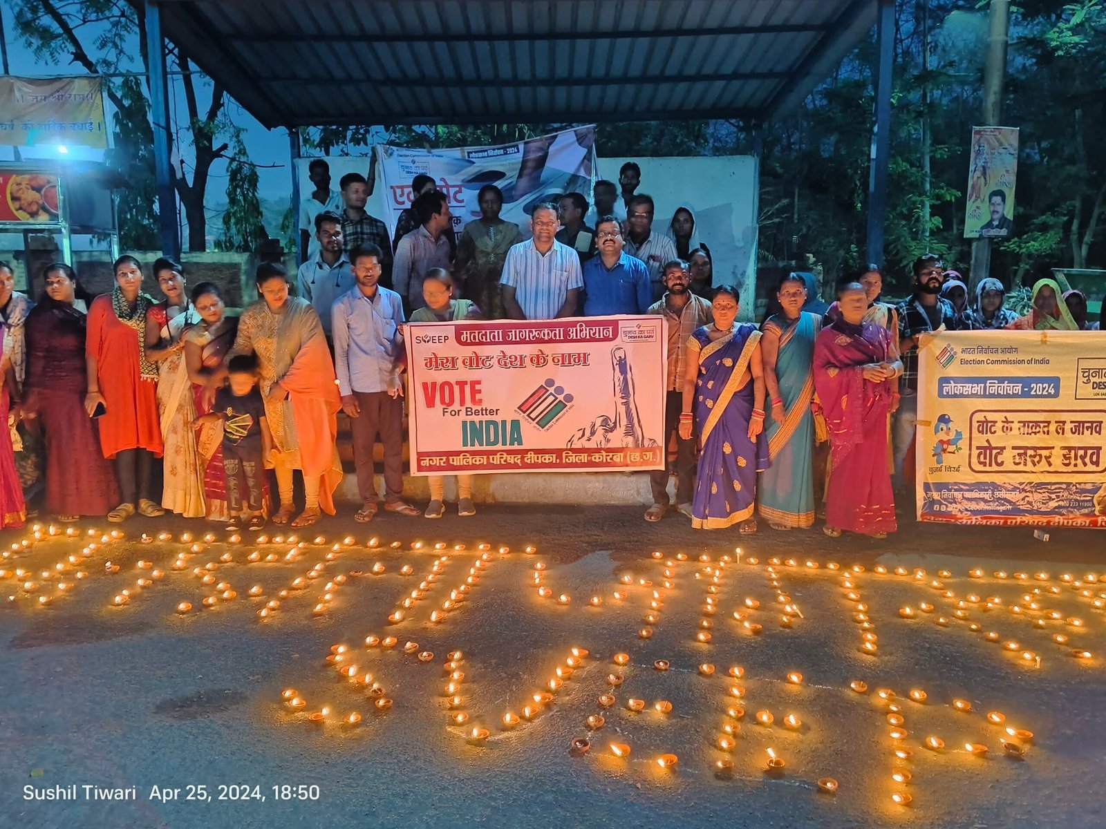 दीपका नगर पालिका के अधिकारी कर्मचारियों ने पूरे स्टाफ के साथ प्रगति नगर के व्यवसायिक शापिंग परिसर में द्वीप प्रजावलित कर मतदान करने अपील किया ।