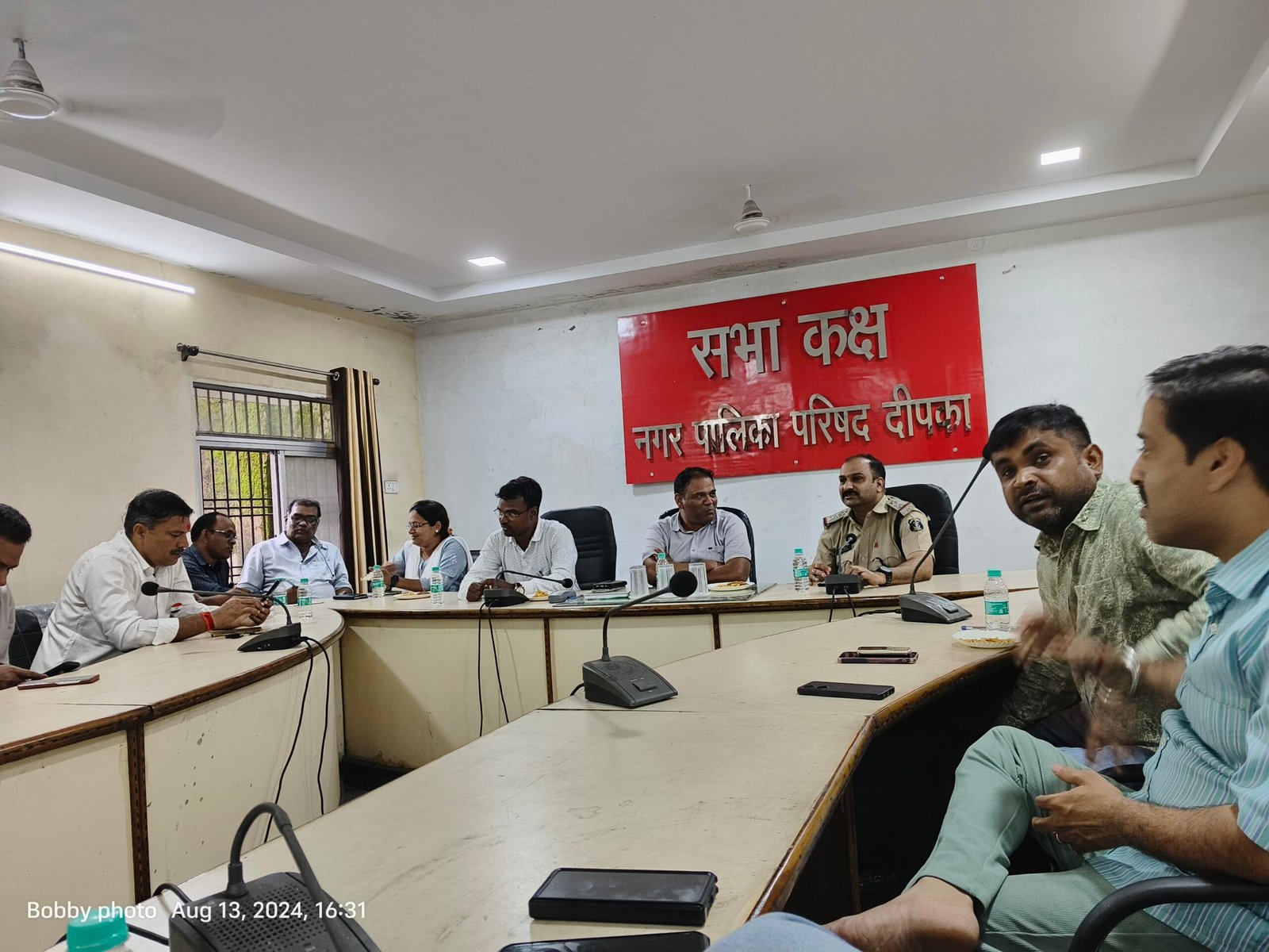 दीपका नगर पालिका परिषद के “सभा कक्ष” में एक महत्वपूर्ण बैठक का आयोजन किया गया, जिसमें तहसीलदार अमित केरकेट्टा, मुख्य नगर पालिका अधिकारी (सीएमओ) राजेश कुमार गुप्ता, थाना प्रभारी युवराज तिवारी, पार्षद ,जन प्रतिनिधि गण,प्रेस मीडिया के पत्रकार, और स्थानीय व्यापारी शामिल थे।