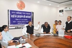 छत्तीसगढ़ नगर पालिक अधिनियम, 1961 की धारा-29 (क) सहपठित छत्तीसगढ़ नगर पालिका (अनुसूचित जाति, अनुसूचित जनजाति, अन्य पिछड़ा वर्ग एवं महिलाओं के लिये वार्डों का आरक्षण) नियम 1994 के प्रावधानों के तहत कवर्धा जिले के सभी नगर निकायों में वार्डों के लिए आरक्षण सुनिश्चित किया गया। इस दौरान अपर कलेक्टर मोनिका कौड़ो, कवर्धा एसडीएम अनुपम टोप्पो, सहसपुर लोहारा आकांक्षा नायक, डिप्टी कलेक्टर आरबी देवांगन, गीता रायस्त, सहायक संचालक एम के गुप्ता, नगर पालिका और नगर पंचायत के सीएमओं सहित राजनैतिक पार्टी के प्रतिनिधि उपस्थित थे।