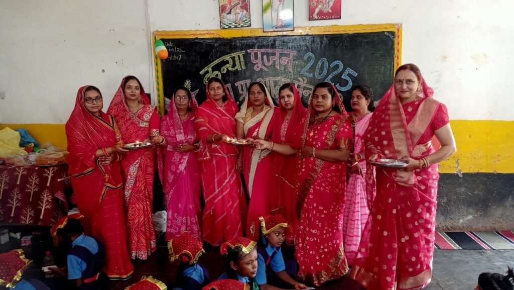 नवरात्रि पर शासकीय प्राथमिक शाला मैनपुरी में कन्या भोज व नेवता भोज का आयोजन