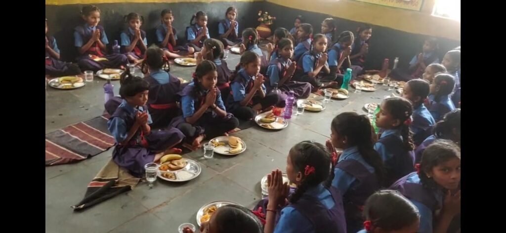 नवरात्रि पर शासकीय प्राथमिक शाला मैनपुरी में कन्या भोज व नेवता भोज का आयोजन