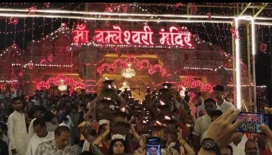 शारदीय नवरात्र समापन: मां बम्लेश्वरी धाम में 901 ज्योति कलश विसर्जन, रेलवे ने ट्रेनों को रोका