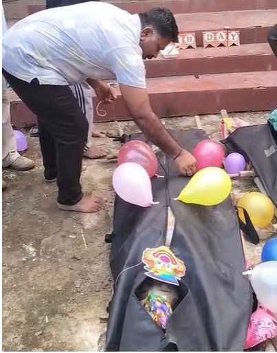 दिल को झकझोर देने वाली तस्वीर: कवर्धा में मासूम की चिता पर जन्मदिन का केक और रंग-बिरंगे गुब्बारे