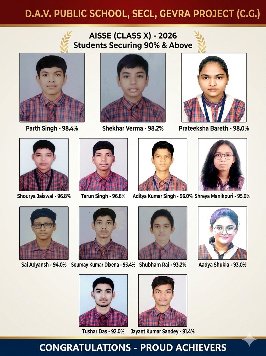 केंद्रीय माध्यमिक शिक्षा बोर्ड (सीबीएसई) द्वारा 15 अप्रैल को घोषित 10वीं बोर्ड परीक्षा परिणाम में डीएवी पब्लिक स्कूल, गेवरा ने एक बार फिर शानदार प्रदर्शन करते हुए 100 प्रतिशत परिणाम हासिल किया। विद्यालय के सभी 101 विद्यार्थी परीक्षा में सफल रहे, जो संस्था की शैक्षणिक गुणवत्ता और अनुशासन को दर्शाता है।