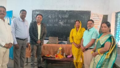 माध्यमिक शाला कृष्णा नगर दीपका में पार्षद शांति देवी राजपूत ने किया सरस्वती पूजन, बच्चों को किया गया फल वितरण