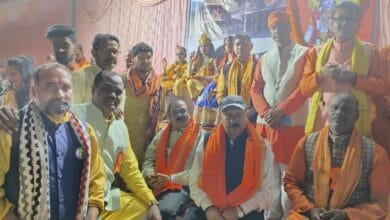 श्री राम कथा : दीपका में मानस महायज्ञ एवं श्री राम कथा में भगवान राम की जय घोष के साथ निकली शोभायात्रा,बड़ी संख्या में महिलाएं हुई शामिल मादर की थाप पर महिला करमा नृतक दल बढ़ा रही थी शोभा