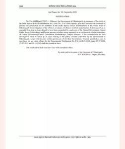 रायपुर। छत्तीसगढ़ सरकार ने राज्य कर्मचारियों के खिलाफ सीबीआई जांच के लिए अनुमति आवश्यक बना दी है। भारतीय न्याय संहिता के तहत अधिसूचित इस निर्णय के अनुसार, लिखित अनुमति के बिना सीबीआई जांच नहीं कर सकेगी। राजपत्र में प्रकाशित सूचना के अनुसार, यह नियम लागू हो गया है।