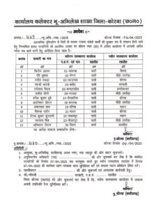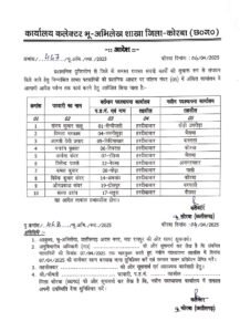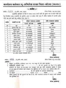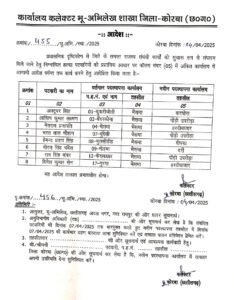 कोरबा, 4 अप्रैल 2025। कोरबा जिले में प्रशासनिक फेरबदल के तहत बड़ी संख्या में पटवारियों का तबादला किया गया है। जिले के कलेक्टर अजीत वसंत ने 125 पटवारियों को एक तहसील से दूसरी तहसील में स्थानांतरित करने का आदेश जारी किया है। यह निर्णय उन पटवारियों को लेकर लिया गया है जो लंबे समय से एक ही स्थान पर जमे हुए थे।